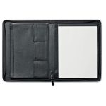 Mapă de conferință A4 cu copertă din piele. Cu fermoar. 25 de file simple. 4 compartimente interne. Suport pentru pix.