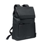 Rucsac pentru laptop de 15 inch în RPET 600D 2 tonuri, cu clapetă magnetică. Compartiment pentru laptop căptușit, buzunare frontale cu fermoar și 2 buzunare laterale.