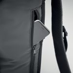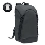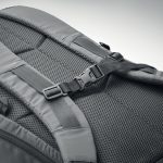 Rucsac din poliester 190T reflectorizant. Buzunar exterior lateral cu fermoar și spate căptușit, căptușeală interioară cu închidere cu cordon. Un compartiment interior mare și căptușit pentru laptop. Dispune de curea ajustabilă căptușită pentru rucsac și curea reglabilă pentru piept și talie cu închidere cu cataramă. Atât partea superioară cât și cureaua de piept și de talie cu catarama joasă. Rezistent la apă.