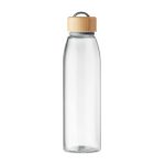 Sticlă din sticlă cu capac din bambus și suport din TPU. Nu este potrivită pentru băuturi carbogazoase. Capacitate: 500 ml. Fără scurgeri. Bambusul este un produs natural, în consecință pot apărea diferențe de culoare, dimensiune sau desen.