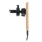 Încărcător wireless magnetic din bambus cu suport auto. Ieșire: DC 9V/1,67A (15W) pentru încărcare rapidă. Compatibil cu iPhone® 12 și mai nou. Inclus inelul metalic magnetic suplimentar pentru a susține încărcarea altor telefoane cu încărcare wireless nemagnetică. Bambusul este un produs natural, în consecință pot apărea diferențe de culoare, dimensiune sau desen.