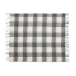 Pătură din RPET poliester mohair cu design în carouri și franjuri rulate manual. Înfășurată în panglică și compliment card imprimabil inclus.